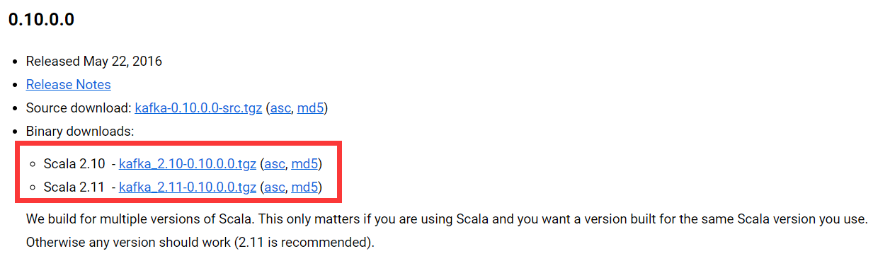 例如kafka_2.11-0.10.0.0,前面的2.11是编译Kafka源代码的Scala编译器版本,后面的0.10.0.0才是Kafka真正的版本号,1.0.0之后的版本命名规则从4位变成了3位,比如:kafka_2.11-2.1.1 [其中2代表大版本号,1表示小版本号或次版本号,1表示修订版本号]