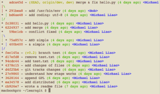 #用带参数的git log --graph查看分支的合并图,若不加--graph的话,只会出现commit信息