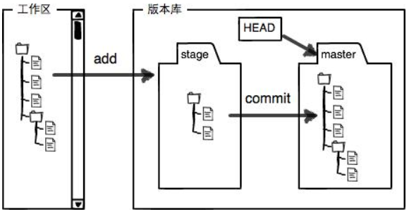 ;Git版本库中存有很多东西,其中有一个叫stage(index)的暂存区