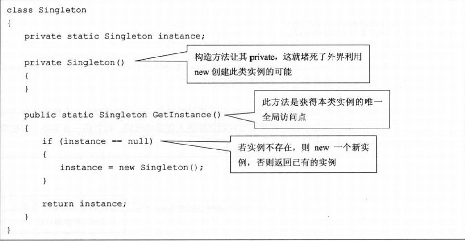 要么不要有,有只能一个;保证一个类仅有一个实例,并提供一个访问它的全局访问点。让类自身负责唯一实例。这个类保证没有其他实例被创建,但可以提供一个访问该实例的方法