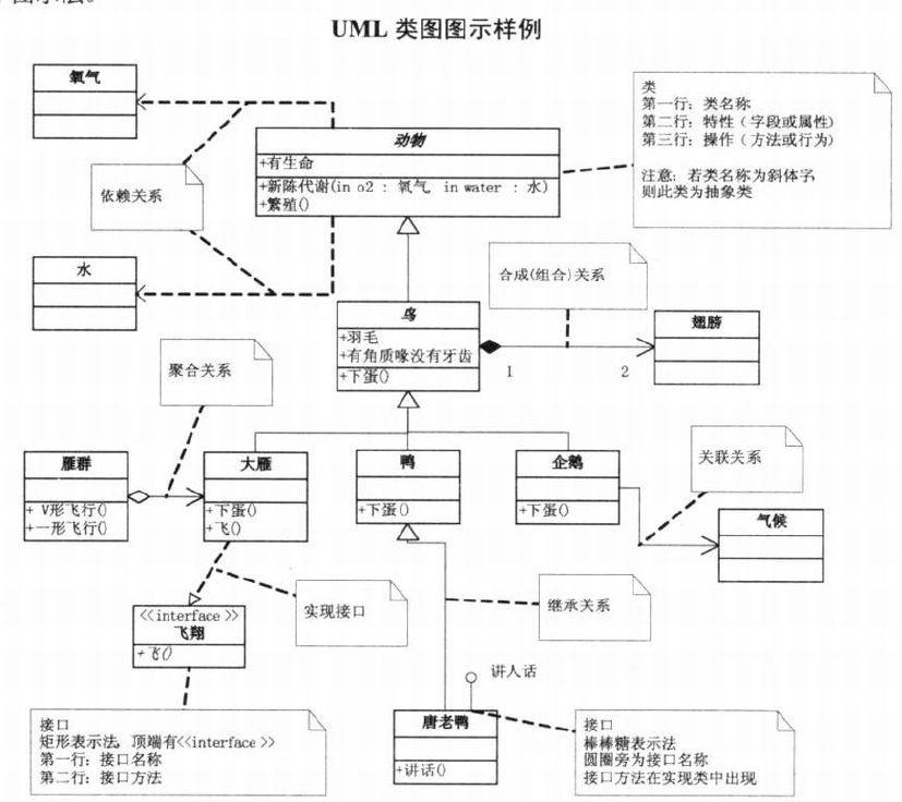 比如:每只大雁都属于一个雁群,而一个雁群可以有多只大雁;它们之间就满足聚合关系。聚合表示一种弱的‘拥有’关系,体现的是A对象可以包含B对象,但B对象不是A对象的一部分。聚合用空心菱形+实线箭头表示,菱形在B对象上,箭头指向A对象